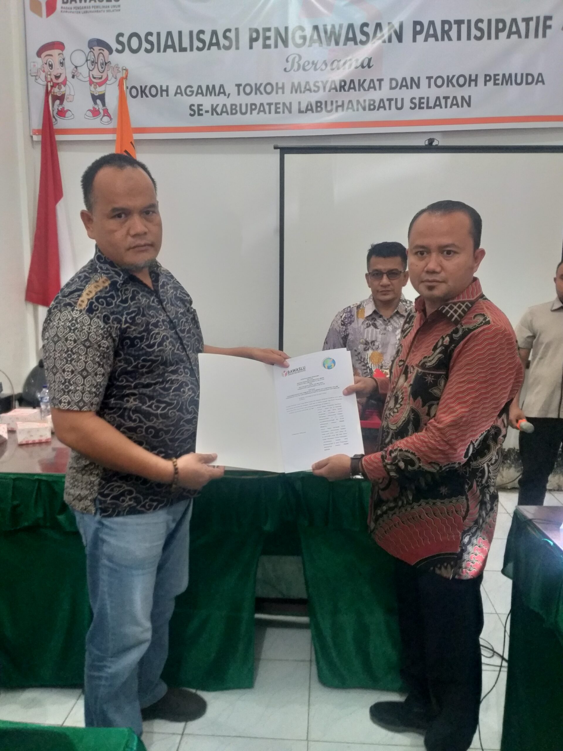 Labusel, goresnews.com Badan Pengawas Pemilihan Umum (BAWASLU ) Kabupaten Labuhanbatu Selatan laksanakan sosialisasi pengawasan partisipatif bersama Tokoh Agama, Tokoh Masyarakat, Tokoh Pemuda dan Media, Kamis (03/11/2022) jam 10.00 WIB di aula GAKKUM sekretariat BAWASLU Jalan Lintas Sumatera-Simaninggir No. 83-84 Kotapinang, Kelurahan Kotapinang