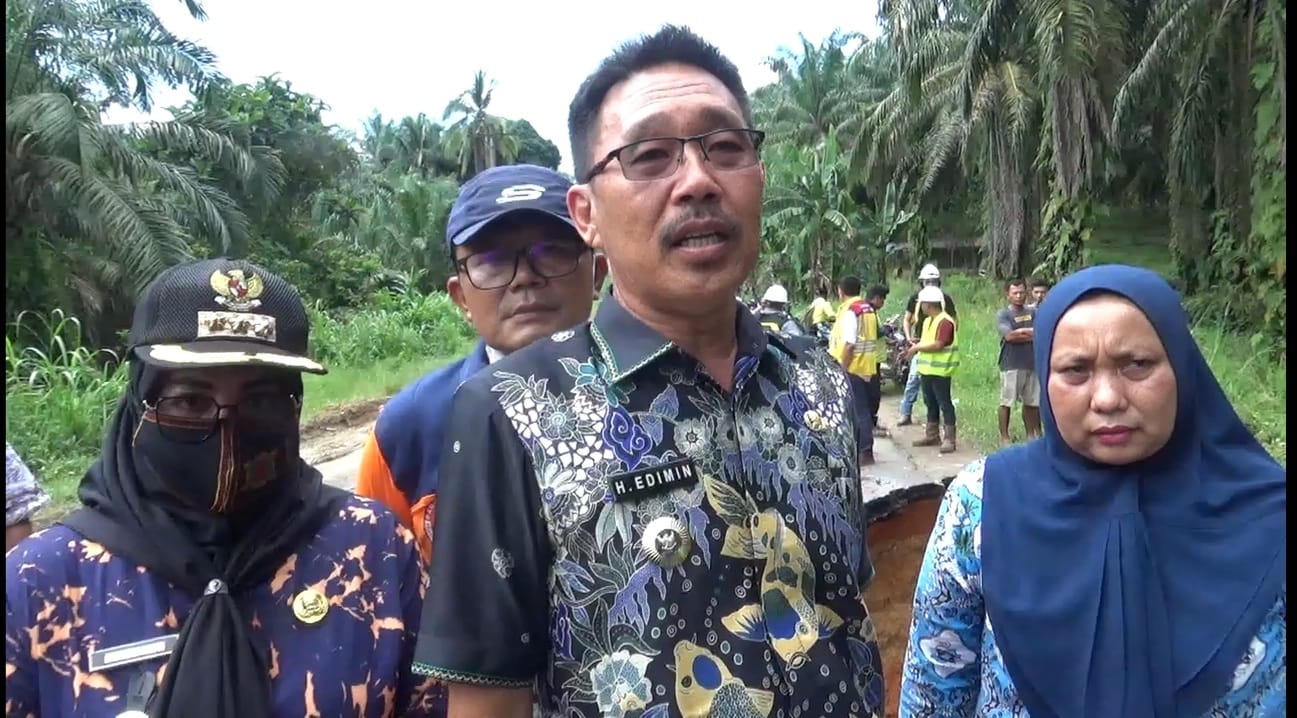 Hadir dilokasi Bupati H. Edimin beserta petugas balai jalan provinsi, Kepala BNPB Ismail Suwito, Kadisnaker Sutrisno, Kadis Pertanian Azaman Parapat, Kadishub Ahmad Syukri, Camat Sei Kanan Syarifah Hafni (Wahyu/Cs)