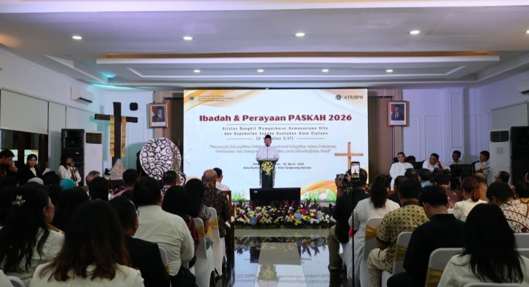 TANGERANG SELATAN, goresnews.com Menteri Agraria dan Tata Ruang/Kepala Badan Pertanahan Nasional (ATR/BPN), Nusron Wahid, menghadiri Perayaan dan Ibadah Paskah Persekutuan Umat Kristiani Kementerian ATR/BPN pada Jumat (24/04/2026). Ia mengajak seluruh jajaran untuk menjadikan momentum Paskah sebagai titik kebangkitan bersama, tidak hanya secara spiritual, tetapi juga dalam kehidupan berbangsa dan bernegara.