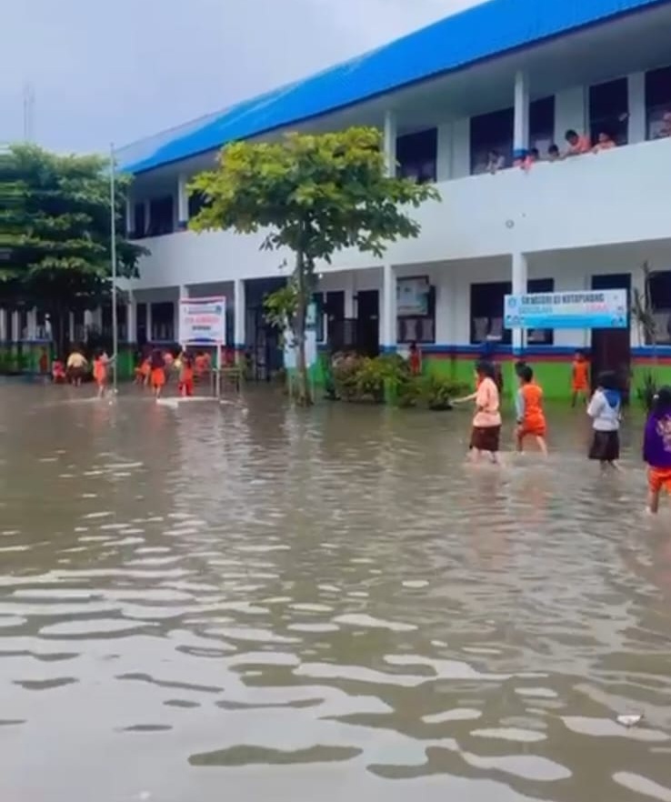 Kondisi air dilantai SDN menutupi lantai keramik (foto-can)