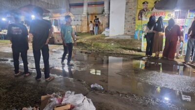 Air berserakan ke Jalan utama lapangan yang dikeluarkan dari WC (foto-cand)