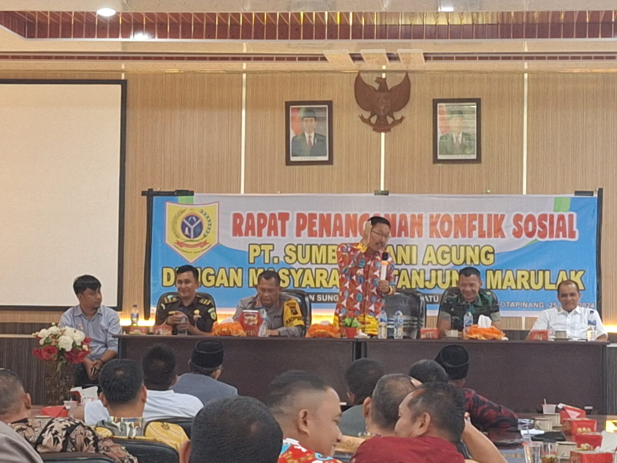 Labusel, goresnews.com Pemerintah Daerah Kabupaten Labuhanbatu Selatan yang dipimpin H. Edimin fasilitasi pertikaian dengan dilaksanakan Rapat Penanganan Konfik Sosial (RPKS). Yang bertahun-tahun tak kunjung selesai antara Perusahaan Terbatas Sinar Tani Agung (PT. STA) dengan Masyarakat Desa Tanjung Marulak (MDTM) di Aula Badan Perencanaan Pembagunan Daerah Penelitian dan Pengebangan (Bappeda Litbang) tanggal 25 Juli Perkantoran Kantor Bupati Jalinsum Kotapinang-Gunung Tua Desa Sosopan, Kecamatan Kotapinang.