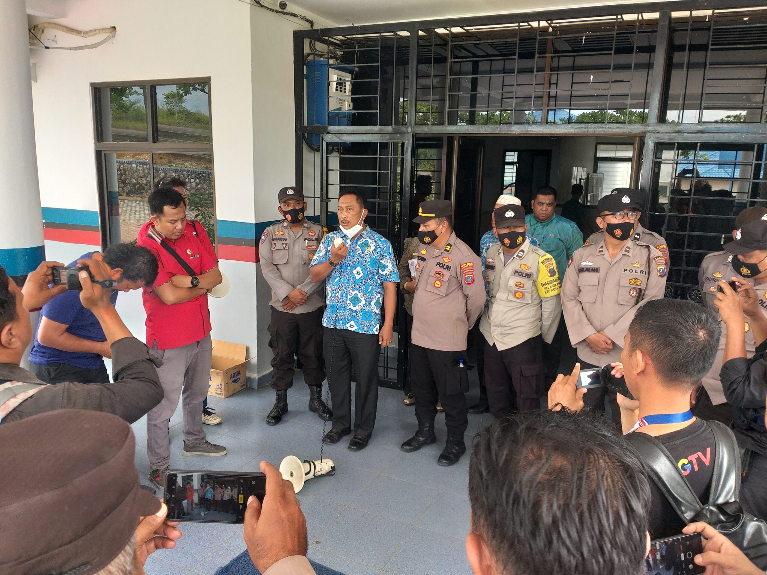 Yang sebelumnya mereka masuk dan berjalan kaki melewati gerbang pintu utama kantor Bupati, yang dijaga aparat ke Polisian dan SatpolPP, dengan alasan melihat beberapa anggotanya yang sudah berada di pekarangan kantor dinas pendidikan, dengan kawalan aparat pengaman.