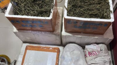Saat dilakukan penggeledahan di lokasi penangkapan, petugas menemukan dua kotak sterofoam berwarna putih yang dibungkus goni. Setelah diperiksa, kedua kotak tersebut diduga berisi narkotika jenis ganja yang dipecah berat masing-masing sekitar 7.500 gram dan 6.250 gram.