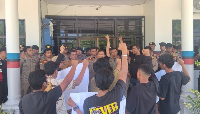 Delapan Massa Amplas Orasi Didepan Kantor Bappeda Litbang Labusel.