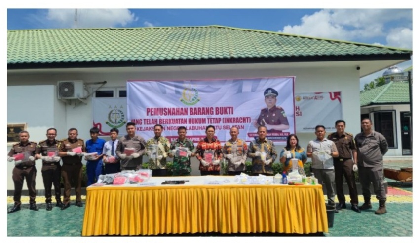 KOTAPINANG, goresnews.com Kejaksaan Negeri Labuhanbatu Selatan (Kejari Labusel) menunjukkan komitmen tegas dalam penegakan hukum dengan memusnahkan berbagai barang bukti (BB) dari perkara yang telah berkekuatan hukum tetap (inkracht). Kegiatan ini digelar di halaman Kantor Kejari Labusel, Jalan Istana, Kelurahan Kotapinang, Kecamatan Kotapinang, Kamis (16/04/2026) pukul 10.00 WIB.