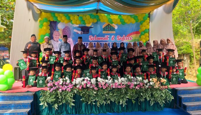 Labusel, goresnews.com mengawali acara pelepasan siswa siswi TKIT Refah dilantunkannya ayat-ayat suci AlQuran oleh peserta…