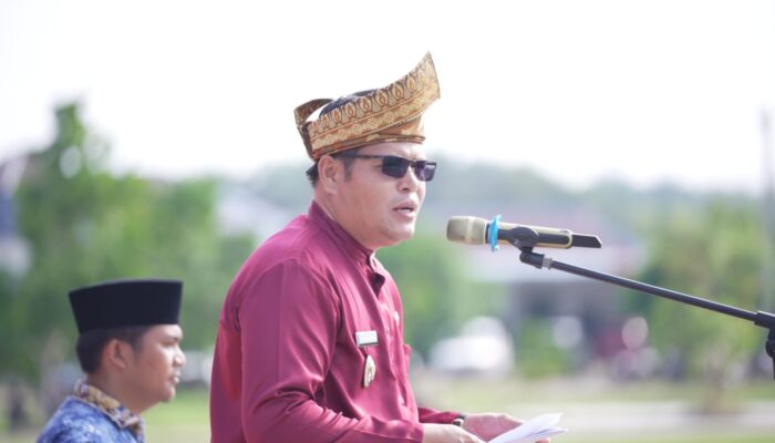 Sebagai pimpinan upacara Hardiknas tanun 2024, terlihat Ahmad Padli Tanjung dengan gagah berdiri dimimbar upacara memakai baju dinas begitu juga komandan upacara Suroto Kabid di Dinas Pendidikan yang memakai baju adat.