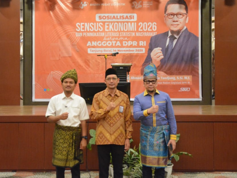 TANJUNGBALAI, goresnews.com upaya memperkuat fondasi pembangunan berbasis data kembali ditegaskan Wali Kota Tanjungbalai, Mahyaruddin Salim, saat menghadiri Sosialisasi Sensus Ekonomi 2026 (SE2026) dan Peningkatan Literasi Statistik Masyarakat, Jumat sore (14/11/2025) di Hotel Grand Singgie. Kegiatan ini turut dihadiri Anggota DPR RI Ahmad Doli Kurnia Tanjung, BPS, serta berbagai instansi terkait.